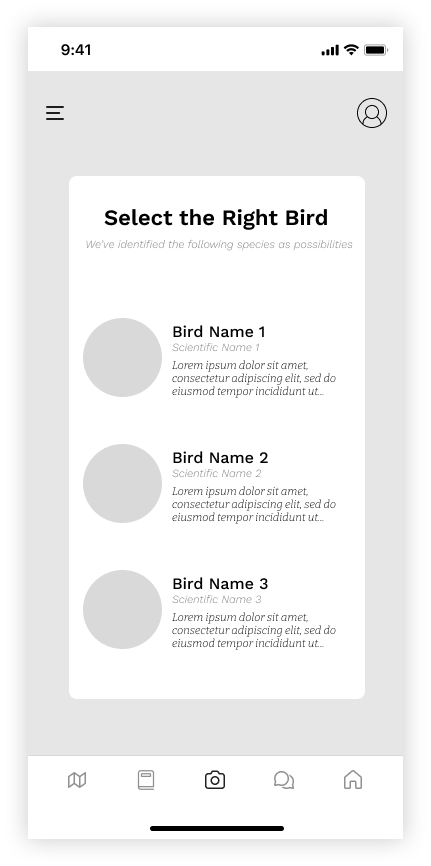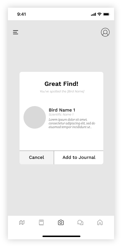 The result was a cohesive, visually rich prototype that captured the feel of a professional product for birding hobbyists to document and share their experiences.