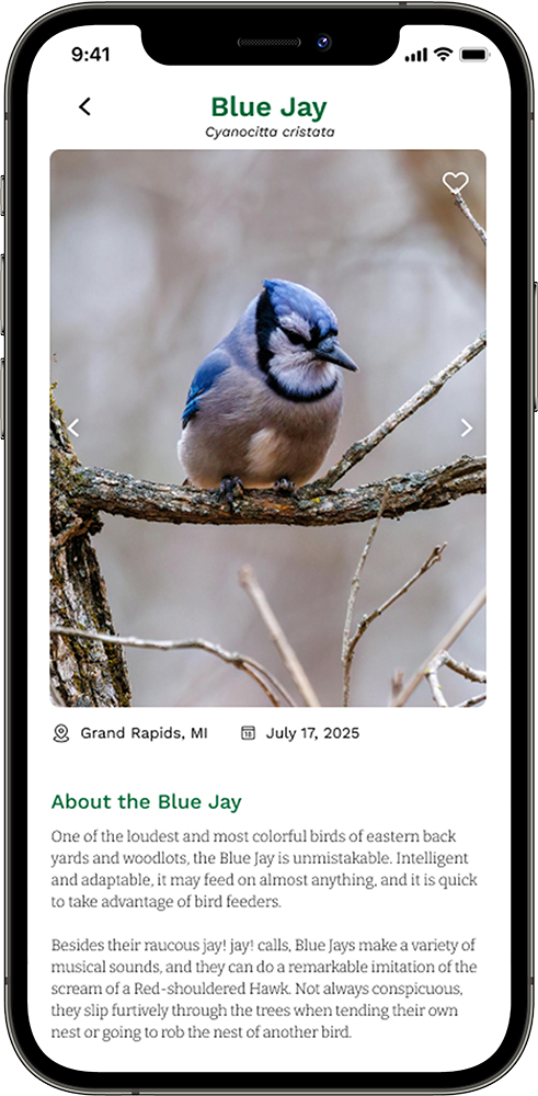 To test intuitiveness and clarity, I conducted a moderated usability test with three new users unfamiliar with birding apps. Participants completed four structured tasks ranging from learning about a Blue Jay’s habitat to setting a favorite photo.