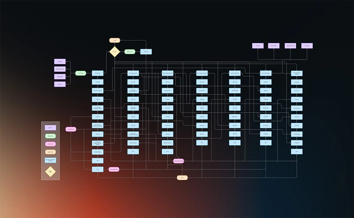 I developed user flow diagrams to map how visitors would navigate the site—from initial awareness through to form submission or demo request. This clarified the structure, revealed gaps in navigation, and informed how content and calls to action could guide users toward meaningful outcomes with minimal friction.
